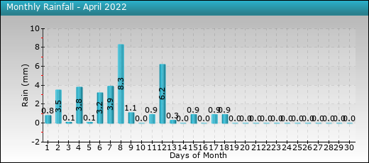 | 01 | 11.5 | 2.8 | 6.3 | 86 | 51 | 67 | 1022.9 | 1017.6 | 1020.2 | 8.6 | 22.1 | 0.8 | 0.8 | 0.0 | 8.5 | |