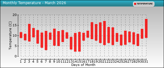 | Monthly | 18.0 | 2.3 | 9.3 | 99 | 45 | 83 | 1035.0 | 1005.8 | 1020.6 | 9.5 | 38.7 | 47.1 | 0.0 | 135.9 | ||