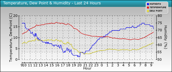 | Max: 11.7°C - 09:24 | Min: 9.4°C - 05:43 | ||